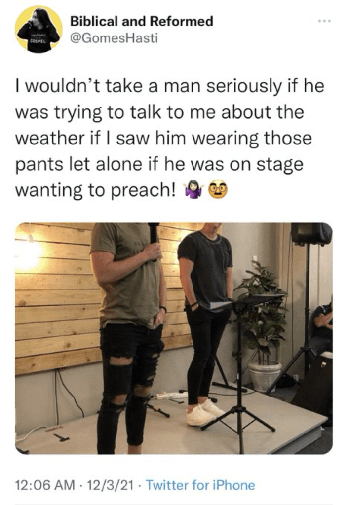 If I were to deconstruct those Cracker Barrel Christians, I would do so by comparing them to tight pants.
